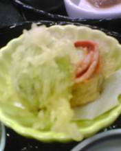 葱を梅肉で来るんで揚げたものをそえます。