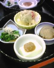 白胡麻豆腐胡麻たれ掛け、アスパラ菜お浸し、