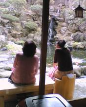 吾妻荘足湯。中庭と池の鯉を眺めながら