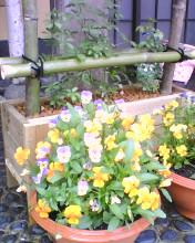 三色スミレが可憐な花を咲かせています。