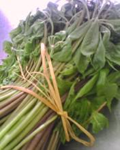 うこぎの葉を摘み、刻みます。