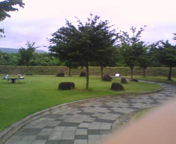 清々しく整備された公園で、石積みを眺めていると