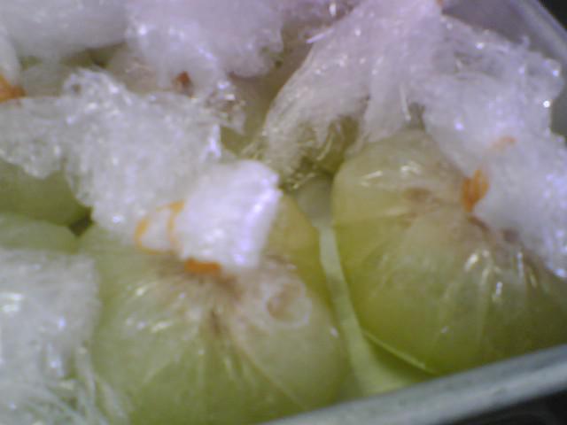 含め煮た冬瓜をスプーンでくりぬき、挽肉に中華出汁で