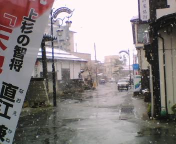 温泉街路は、温泉熱で雪がとけてますね。