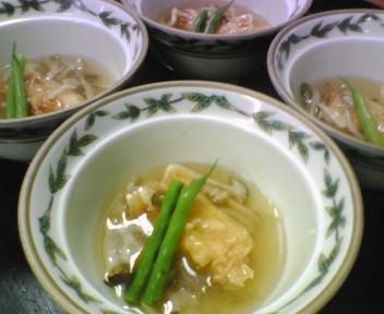 熱々の器に揚げたアーモンド湯葉をのせ、