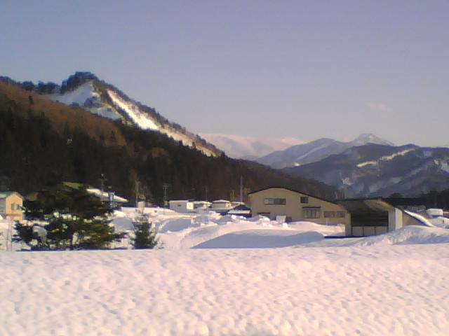 穏やかに晴れた雪景色の小野川温泉から