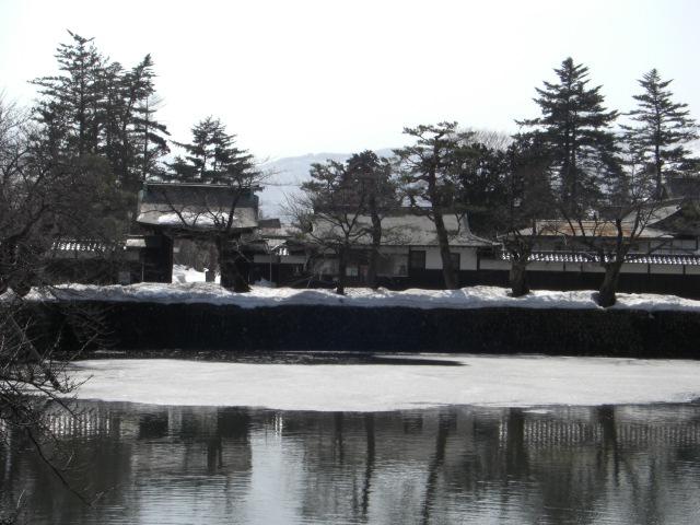 上杉神社正門、内堀にかかる めがね橋より