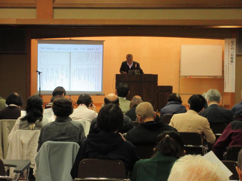 「芭蕉たち文学者はどうやって古典の知識を身に付けたのだろうか?」山本陽史 氏(山形大学名誉教授・放送大学山形学習センター長)を講師に迎え、芭蕉が人との関わりの中で知識を深めていったことなどを江戸時代を前期と後期に分けてお話をいただきました。芭蕉の亡くなる直前の蔵書が4部だったこと、また、江戸時代の庶民がどんな本をよんでいたのか、版本などに触れながら、大いに盛り上がった回となりました。