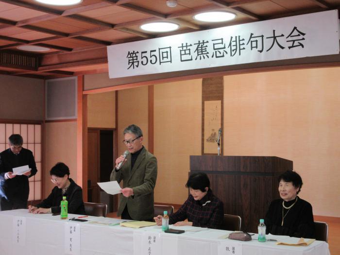 11月17日、第55回芭蕉忌俳句大会が開催されました。開会に先立ち、選者による献句が行われ、芭蕉翁没後330年記念大会は和やかな雰囲気の中、成功裡に終了しました。
