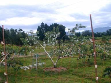 よく見かける桃の木です。一個一個袋掛けをしています。