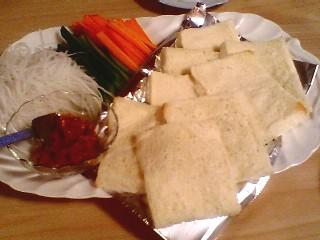 味噌ブランチです。手作りパンを麺棒で伸ばしブランチ特製手作り味噌ソースを塗り、野菜スティックを巻いて食べます(o^_^o)味噌ソースとパン和と洋のコラボレーションが絶妙!