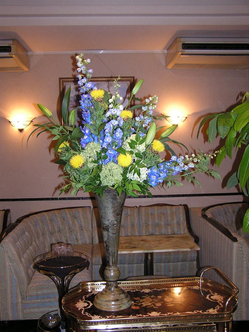 デルフィニューム.アジサイ.オリエンタルリリー.黄金矢車草