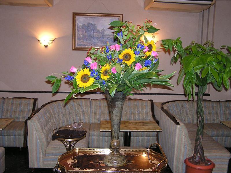 ヒペリカムとひまわりとりんどうとばらを主体にした。
