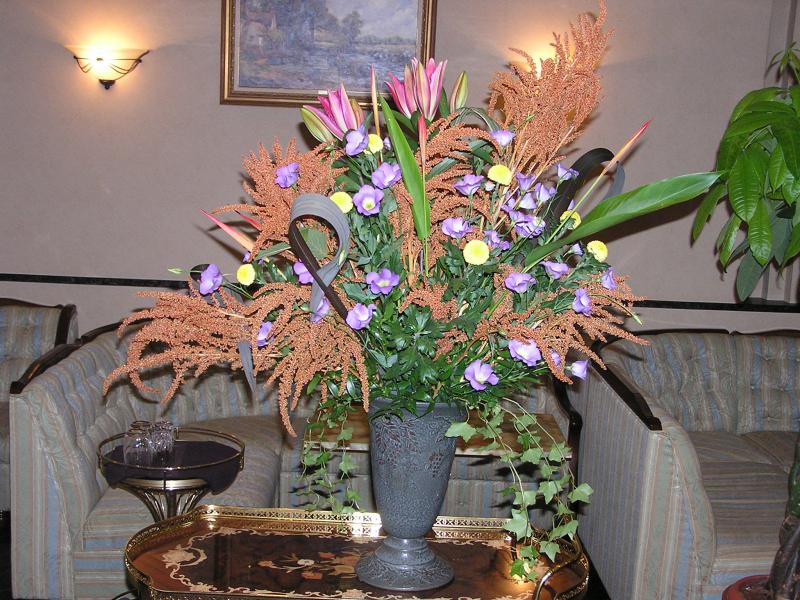 ケイトウとオリエンタルリリーとピンポンキクトルコギキョウ