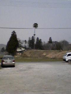 直売場の入口から見える大きなノッポの木もビュンビュンしなっています。