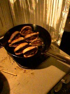 今晩はアケビ餃子です。