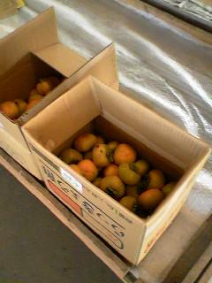 渋抜き用の柿なのでジクは切ってあります。