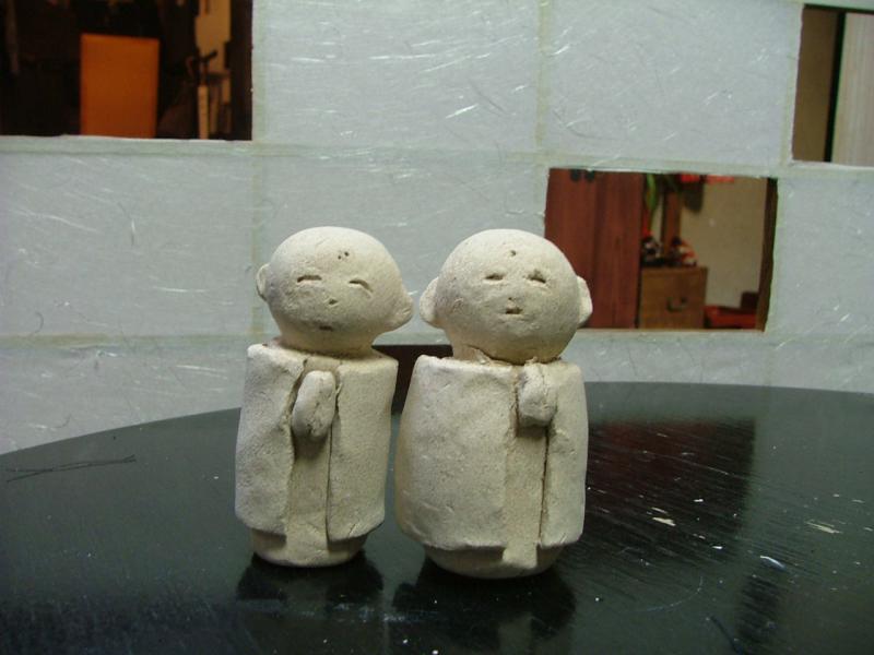 家族での夏休み旅行のシーズンです。何か旅行の思い出に手作りのものを作ってみたい!そんな方たちのために”お地蔵さまをつくろう教室”を開設していす。球体関節人形制作に使っている粘土で作ります。写真は、早くも今夏第1号の体験家族のお子さんたちが作られた作品です。