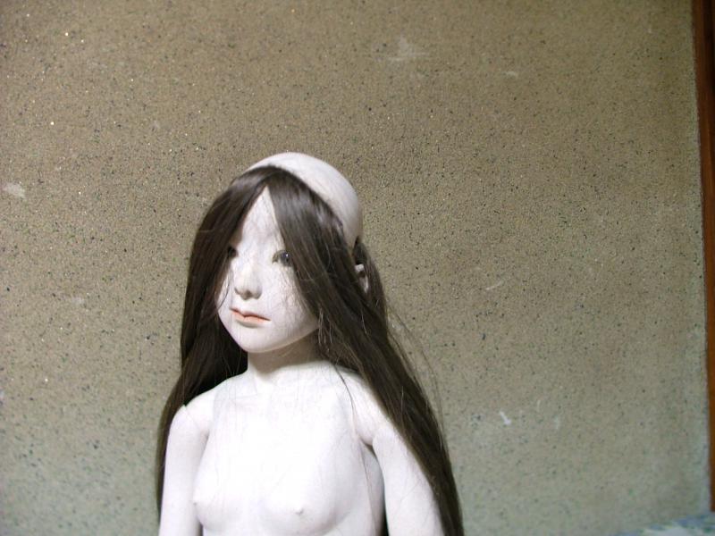 球体関節人形13(髪を貼る)