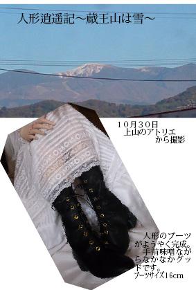 先の初冠雪で頂を真っ白にした蔵王。上山のアトリエの教室の窓から