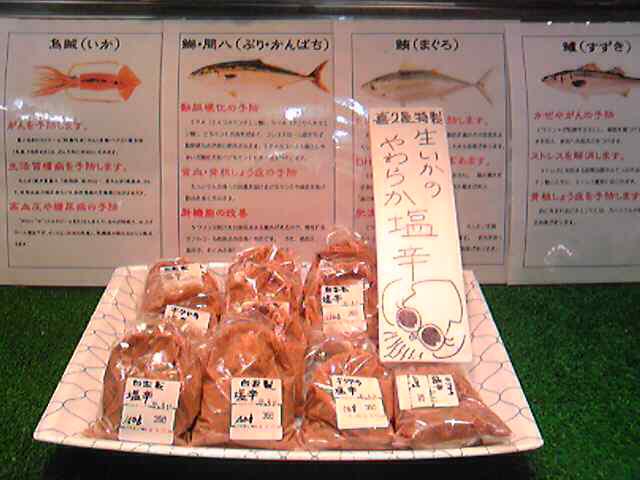 「忙しい」ということを理由に(?)最近作っていませんでした塩辛、久しぶりに店頭に並びました。 タイミングが悪く何度も来ていただいたメガネのお兄さん、本当にお待たせしました。 今のイカはワタに脂がのっているためコクがあります。 そして、庄内浜の藻塩と高畠の酒蔵の酒粕を使用し、皮を剥いた身の方だけを刻み下足が入っていないため、やわらかな塩味と食感の塩辛になっています。 ぜひ一度ご賞味ください。