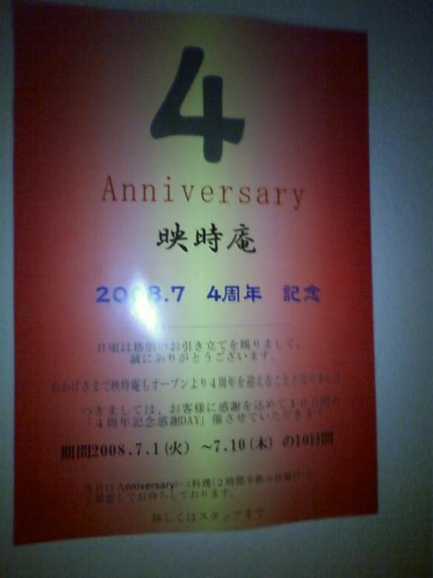 7/1〜10まで映時庵・弐でも本店4周年やってますよ!