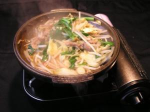 特製ダレに漬け込んだモツを野菜と一緒に卓上で炒めます。