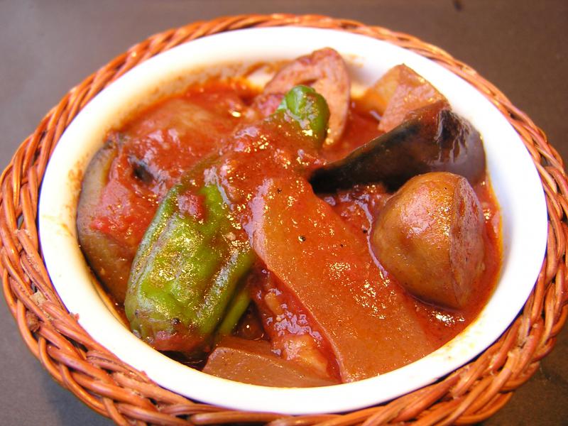 野菜とソーセージのトマト煮込み。