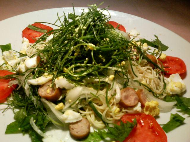 今週はおかひじきとパスタのサラダです!
