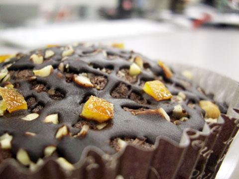 このチョコレートケーキは「バックシュトゥーベ」がバレンタイン用に売り出した商品のようです。見た目も綺麗でおいしそうですが、そのお味は意外と甘すぎないしっかりとした食感の大人のケーキでした。敷き詰められたナッツやオレンジの皮かな?がさらに味に彩りを与えていました!