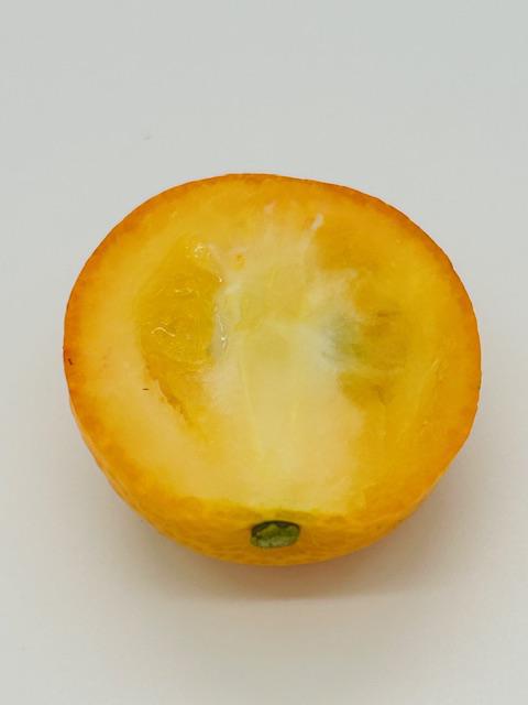 [画像]たまたま金柑は、どんな味ですか?完熟した金柑は皮に甘味があって、ほろ苦さも感じなくなるんだ。中身は少し酸味があって、丸かじりすると爽やかな香りと甘酸っぱさが広がるんだ。食べた後には種だけが残るよ。 ●画像 (大 中 小) ●2024.01.24 ●編集