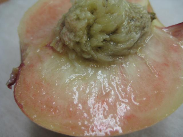 カットする前から部屋中に甘い香りが。種を中心にナイフを入れて、二つ割りにすると滴り落ちる果汁と共に、一層の甘い香りで幸せな気持ちにしてくれます。