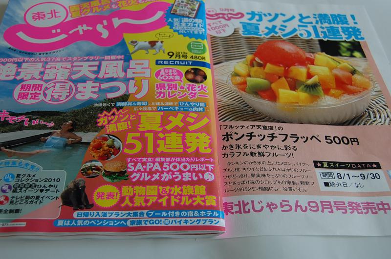 ▼今年も「東北じゃらん9月号」に掲載いただきました。