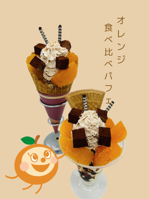 国産オレンジがおいしい季節です。そこで・・・《国産オレンジ食べ比べパフェ》が登場です!
