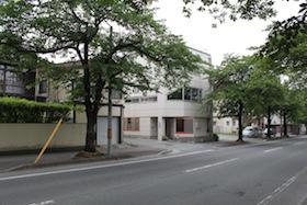 馬見ヶ崎川沿いの桜並木通りにある、3階建のビルです。