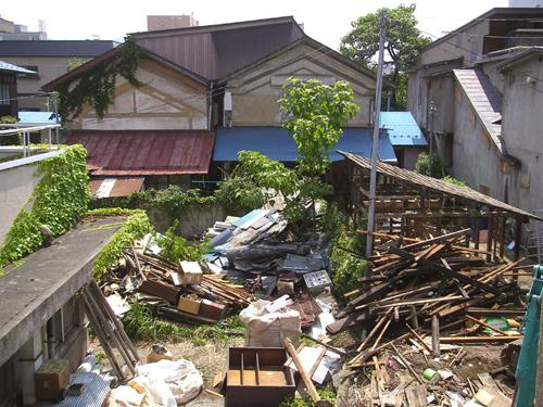 小屋を解体し裏庭を作業場として確保します。