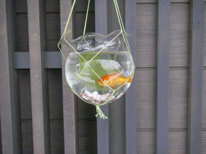 金魚玉・・・ビニールのなかった昔は金魚を運ぶのに使っていたのが金魚玉です。それを軒先に下げて涼を楽しんだものです。金魚が大きく見えたり小さくなったり、見ていて飽きない金魚玉です。