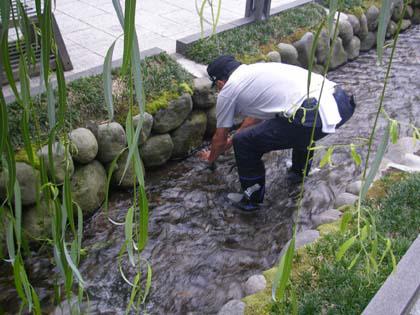 今日、梅花藻おじさんが、何とか梅花藻が根付くように植えてくれました。