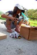 牧場にある板を切って、トンカチでトントン。