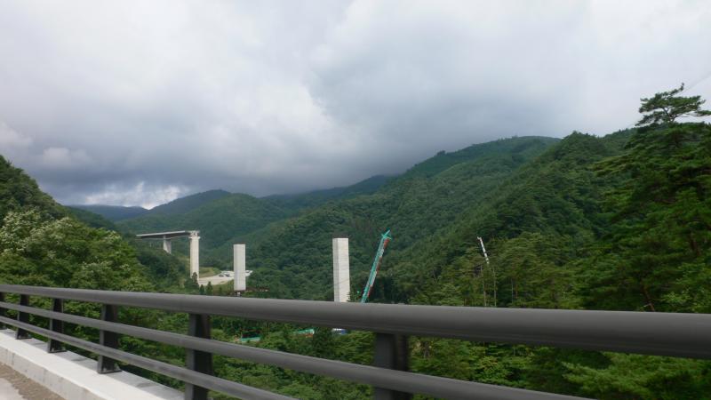 福島県側は、深い谷底からコンクリートの脚が伸び、橋が架けられています。