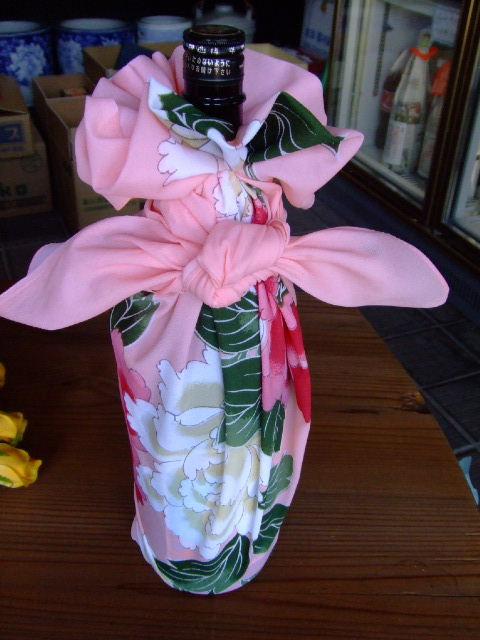 日本酒やワインを、風呂敷でラッピングするのも風情があっていいものですよ! 派手でも地味でも意外と決まります(^^)v それに、ほどいてから使ってもらえるのがいいんです。