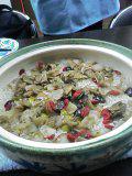 ▼帆立と搾菜の土鍋ご飯