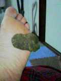 恥さらしたついでにもうひとつ強烈な出来事を激写しておりました!わかりますか?ワタクシの足の裏についたワン公の○んこです。風呂上りにベッドインしようとしたら生温かい柔らかいものが・・・ええっ泣きましたとも! こんな画像載せて許されるのかしらん・・・