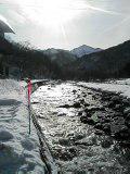 例年よりずっと雪が少ないですね。泊まった部屋の窓の下には川が流れていて聞き慣れない川の音が子守り唄となりました。