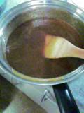 お砂糖に少量の水をいれて煮詰めて焦がしていきます。そこに生クリームを入れるとキャラメルの出来上がり!煮詰めて適当な濃度のクリームにしていきます。