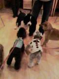 ぜーんぶ違う犬種が七匹そろいました〜っ。もうごっちゃごっちゃです。最初が肝心・・お互い匂いを嗅ぎあってのご挨拶です