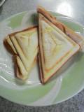 パンに挟んでホットサンドの出来上がりです♪平凡な朝食を激変させてくれまーすぜぃ♪お休みの日の遅いブランチにいかが?中はチーズとハムを入れてもいいし、ツナや卵でも何でもOK!意外にもジャムも熱々でも美味しかったですよ
