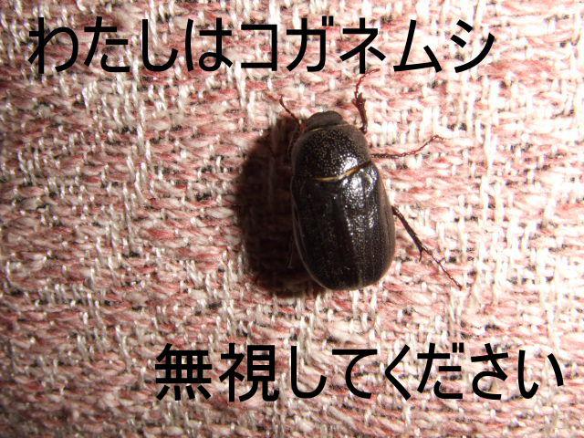 ぐいっとお犬様をどかすと・・あらっ?あららん?これは・・・・カーテンにへばりついたコガネムシのようです。生まれて初めて遭遇した虫にお犬様は興味津々!鼻でクンクン、前足を使ってなんとか落とそうとしますが中々敵もしぶとくジーっとひたすら死んだふりで耐えております。格闘?の末、お犬様の口の中で唾液だらけになってプッと出されました。・・・よかった!食べなくて・・・