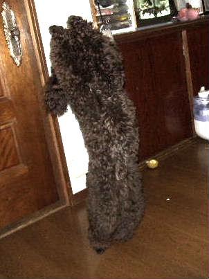もうご褒美ほしさに真剣です。伸ばした両手?でお顔が隠れておりますが、お顔は真直ぐ上を向いております。今はこの格好しながらクルりっと回転する芸を憶えました。プードルって賢いっ!でもそれ故に悪戯は大胆にやってくれます・・・・ふ〜っ(溜め息)