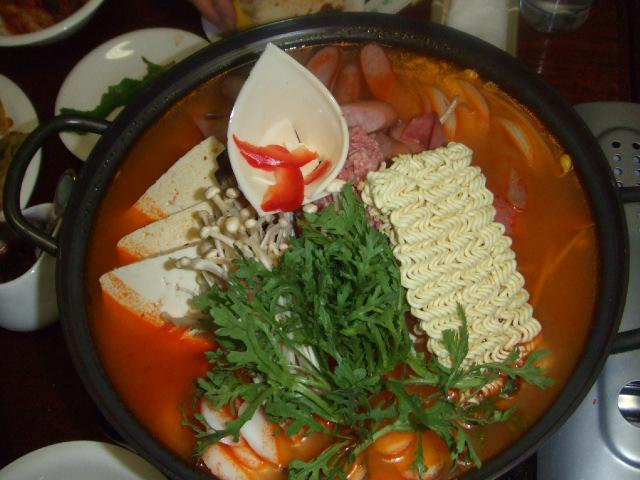 お次はチゲ鍋♪インスタントラーメンが入ってましてびっくり!天井にはとろけるスライスチーズですよっ! これが辛味を和らげてスープにコクを出してくれましたよ あーまた食べたい〜